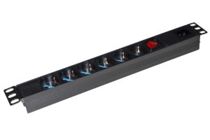 MULTIPRESA ALIMENTAZIONE PER RACK 19″ CON 6 PRESE UNIVERSALI TRIPOLARI/SCHUKO MAGNETOTERMICA