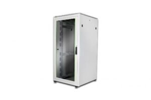 ARMADIO RACK PER RETI 19″ 26U (A)1299, (L)600, (P)1000 COLORE GRIGIO PORTA VETRO DISASSEMBLATO DIGITUS