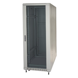 ARMADIO RACK 19″ PER RETI 32U (A)1610, (L)600, (P)800 COLORE GRIGIO PORTA VETRO