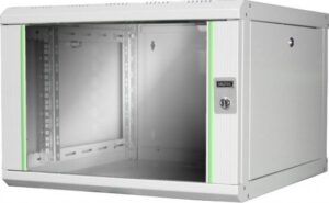 ARMADIO RACK 19″ 6 UNITA’ DA MURO PER RETI (A)350 X (L)540 X (P) 450 MM COLORE GRIGIO PORTA VETRO