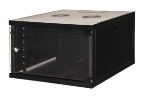 ARMADIO RACK 19″ 6 UNITA’ DA MURO (A)350X (L)540 X PROFONDITA’ 600 MM. COLORE NERO PORTA VETRO