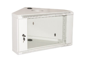 ARMADIO RACK 19″ TRIANGOLARE 6 UNITA’ COLORE GRIGIO PER ANGOLI A MURO PORTA VETRO
