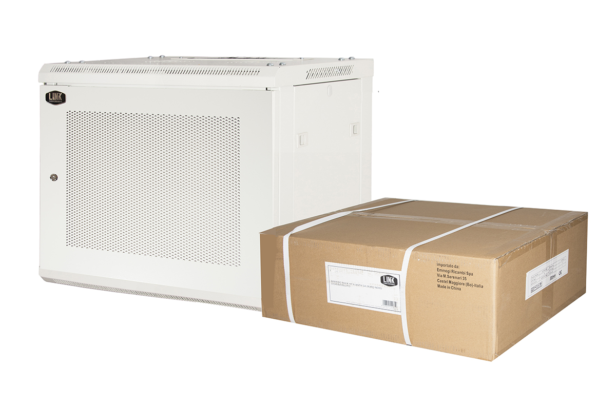 ARMADIO RACK 19″ 6 UNITA’ DA MURO (A) 370 x (L) 600 x (P) 450 GRIGIO DISASSEMBLATO PORTA METALLO TRAFORATA