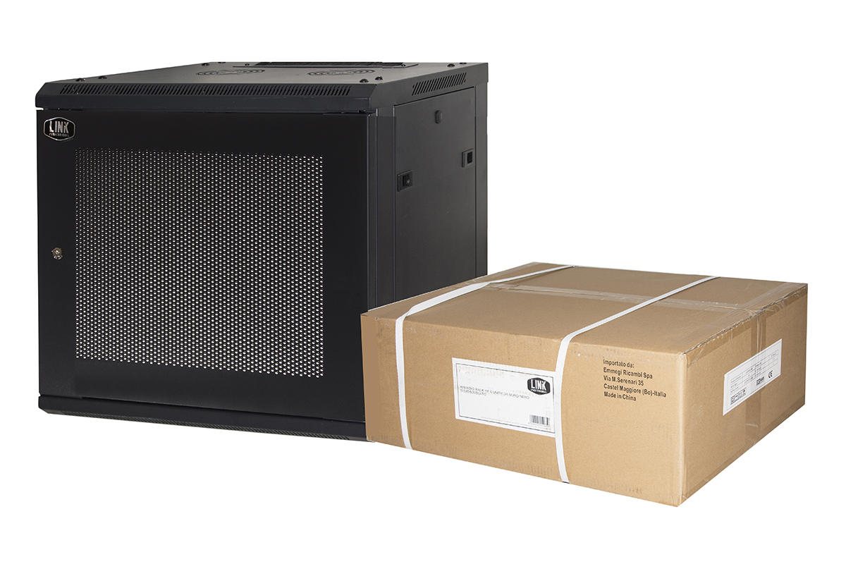ARMADIO RACK 19″ 6 UNITA’ DA MURO (A) 370 x (L) 600 x (P) 450 NERO DISASSEMBLATO PORTA VETRO