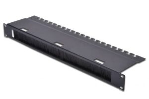 LISTELLO GUIDACAVI FORATO CON SPAZZOLA DI PROTEZIONE PER ARMADI 19″ (1 UNITA’) NERO CON 4 GANCI