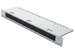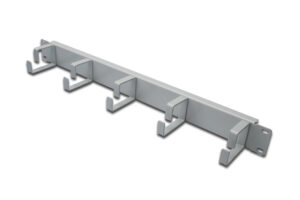 LISTELLO GUIDACAVI FORATO CON SPAZZOLA DI PROTEZIONE PER ARMADI 19″ (1 UNITA’) GRIGIO CON 4 GANCI