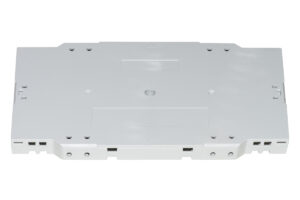 CASSETTO FIBRA OTTICA 24 PORTE PER ADATTATORI SC DUPLEX 1 UNITA’ PER INSTALLAZIONE 19″ GRIGIO CON BINARI TELESCOPICI