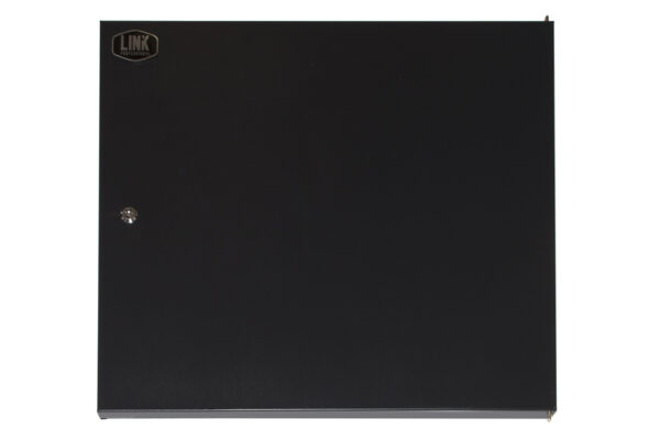 Porta in metallo pieno, colore nero, completamente chiusa per armadi marca Link 12 unità, con serratura.